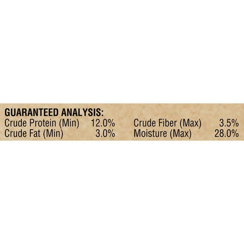 - Ingredients: Ground Wheat, Water, Wheat Flour, Corn Gluten Meal, Sugar, Ground Yellow Corn, Glycerin, Hydrogenated Corn Syrup, Beef, Chicken by-Product Meal, Liver, Soybean Meal, Bacon Fat (Preserved with BHA and Citric Acid), Salt, Corn Starch-Modified, Phosphoric Acid, Dried Wheat, Animal Digest, Gelatin, Sorbic Acid (a Preservative), Added Color, Calcium Propionate (a Preservative), Natural Flavor, Natural and Artificial Smoke Flavors, Red 40 Lake, Natural Porterhouse Steak Flavor. A-5061.