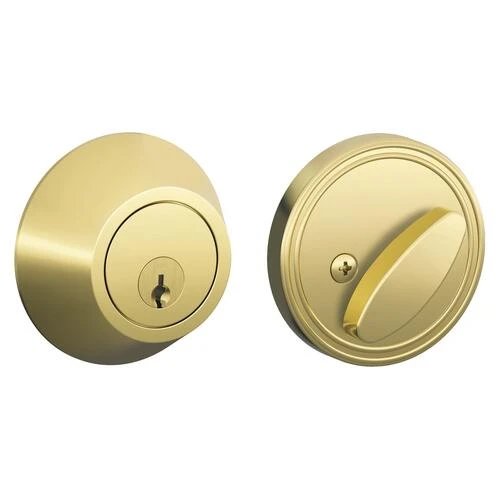 This Dexter® by Schlage® Single Cylinder Deadbolt in a polished brass finish is perfect for use on exterior doors and adds an extra layer of security to your exterior handleset, knob, or lever. When finished in polished brass, the deadbolt looks especially classic. Plus, it has been designed and tested with strength and durability in mind.