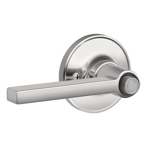 The Schlage Dexter by Schlage Solstice Lever Bed and Bath Lock in Bright Chrome is perfect for use on bedroom and bathroom doors where locking is needed. The Solstice lever offers simple sophistication, with crisp design lines and a structured rectangular look perfect for modern, urban spaces. Our mirror-like Bright Chrome finish adds a touch of drama. Plus, it’s been designed and tested with strength and durability in mind.
