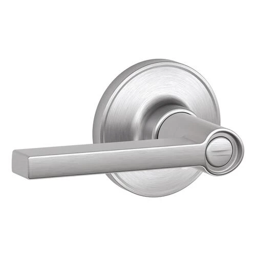 The Schlage Dexter by Schlage Solstice Lever Bed and Bath Lock in Satin Chrome is perfect for use on bedroom and bathroom doors where locking is needed. The Solstice lever offers simple sophistication, with crisp design lines and a structured rectangular look perfect for modern, urban spaces. It becomes especially edge when wrapped in our Satin Chrome finish. Plus, it’s been designed and tested with strength and durability in mind.