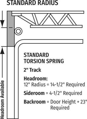 - Commercial 2″ Bracket Mount Track with Standard 12″ Radius Requiring 14-1/2″ of Headroom