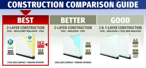 - Best construction with 2″ Intellicore® Insulation, R-Value 18.4 – Warmer. Quieter. Stronger.