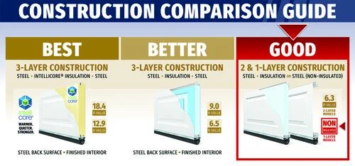 Traditional Steel Panel garage doors feature a design that works with every home without sacrificing style for strength, durability and comfort. This Good construction garage door is non-insulated. It offers dependable construction with long-lasting operation providing you with a great door to suit your home and lifestyle.