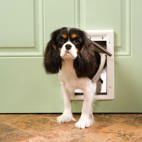 This durable plastic pet door gives you and your furry pal the freedom you both deserve. The frame is paintable to match any decor, and a snap-on closing panel is included to use during those times when you do not want your pet to use the pet door or during inclement weather. The soft, flexible, tinted flap is safe and easy for your dog to push open so he can let himself out and back in. For better weather insulation, the magnetic strip at the bottom of the flap keeps the flap closed when your pet’s not using the door.