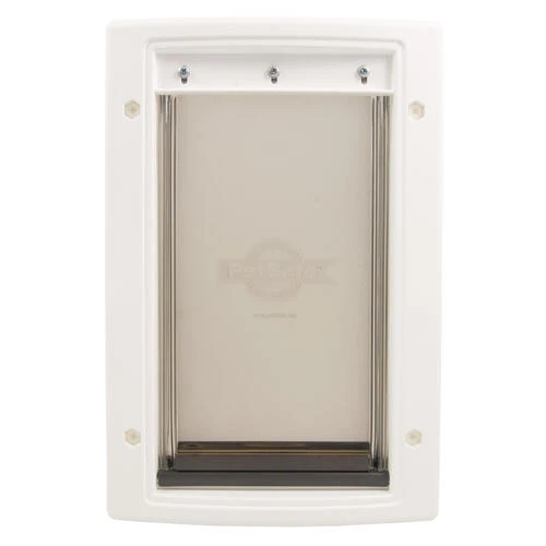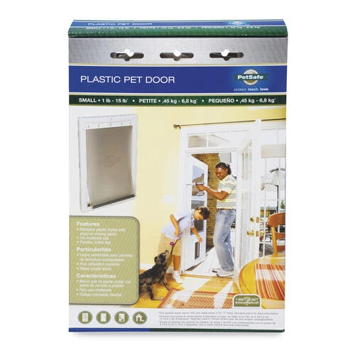 This durable plastic pet door gives you and your furry pal the freedom you both deserve. The soft, flexible transparent panels are safe and easy for your dog to push open so he can let himself out and back in. The panels can also keep out drafts and insects and feature a magnetic strip at the bottom of the flap for better weather resistance.
