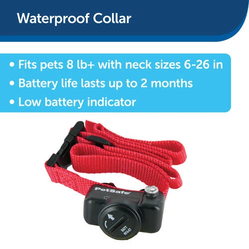 - Waterproof Receiver Collar – The included lightweight, waterproof collar fits pets weighing 8 lb or more with neck sizes between 6-26 in