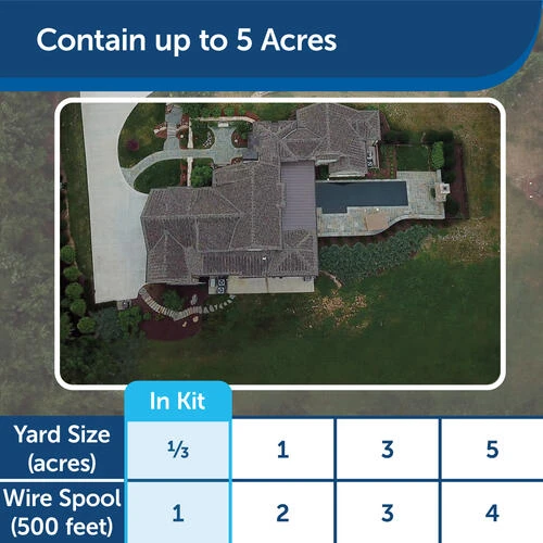 - 1/3 Acre Coverage – 500 ft of included wire lets you contain up to a 1/3-acre yard; purchase additional wire to contain up to 5-acres