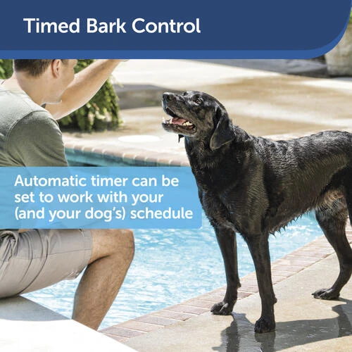 - The timer works like an alarm clock, turning the unit on and off at specific times to help your pup from becoming desensitized to the ultrasonic tone