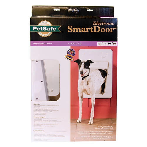Our innovative Electronic SmartDoor™ gives your pet a key to the house. The SmartDoor uses radio frequency technology to read the unique signal of a SmartKey™ worn on your pet’s collar and triggers the battery-powered flap to unlock. When the SmartDoor no longer senses your pet’s SmartKey, the flap automatically locks back into place, helping prevent animals without a key from using the door.