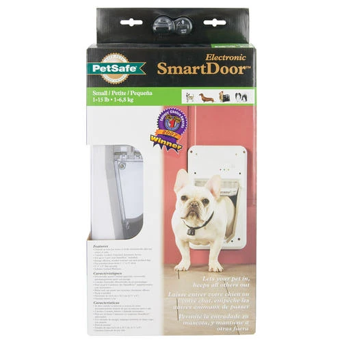 Our innovative Electronic SmartDoor™ gives your pet a key to the house. The SmartDoor uses radio frequency technology to read the unique signal of a SmartKey™ worn on your pet’s collar and triggers the battery-powered flap to unlock. When the SmartDoor no longer senses your pet’s SmartKey, the flap automatically locks back into place, helping prevent animals without a key from using the door.