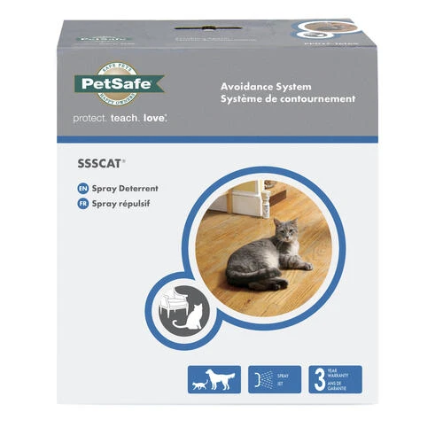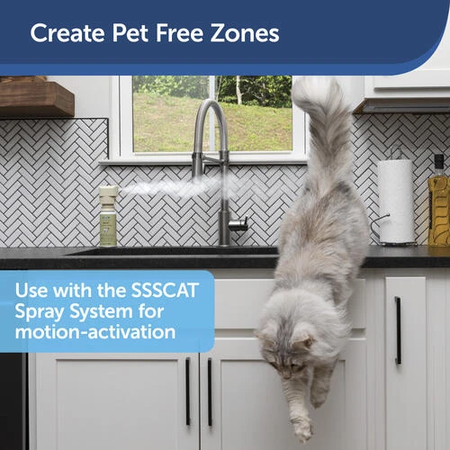 - Place SSSCAT® Spray Deterrent on countertops, next to the trash can, or near furniture to quickly and safely teach your cat or dog to avoid certain areas of your home
