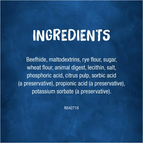 - Ingredients: Beef hide, Maltodextrins, Rye Flour, Sugar, Wheat Flour, Animal Digest, Lecithin, Salt, Phosphoric Acid, Citrus Fiber, Sorbic Acid (a Preservative), Propionic Acid (a Preservative), Potassium Sorbate (a Preservative). L-5427