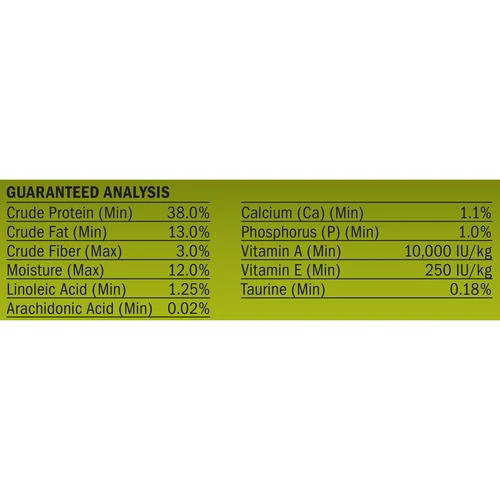 - Ingredients; Chicken By-Product Meal, Corn Gluten Meal, Soy Flour, Ground Whole Wheat, Brewers Rice, Animal Fat Preserved with Mixed-Tocopherols, Corn Meal, Natural Flavor, Chicken, Salmon, Phosphoric Acid, Salt, Calcium Carbonated, Dried Spinach, Choline Chloride, Taurine, Vitamin E Supplement, Zinc Sulfate, Ferrous Sulfate, Manganese Sulfate, Potassium Chloride, Niacin, Copper Sulfate, Vitamin A Supplement, Calcium Pantothenate, Thiamine Mononitrate, Riboflavin Supplement, Vitamin B-12 Supplement, Pyridoxine Hydrochloride, Folic Acid, Vitamin D-3 Supplement, Calcium Iodate, Biotin, Menadione Sodium Bisulfite Complex (Source of Vitamin K Activity), Sodium Selenite. F-4521.