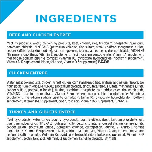 - Three Flavors included – Made With Real Beef and Chicken Made With Real Chicken Made with Real Turkey and Giblets