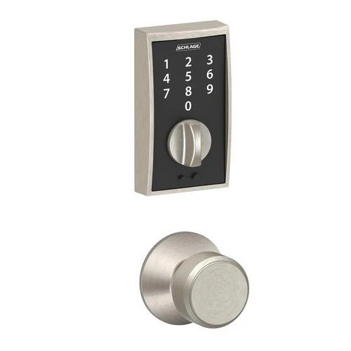 With the Schlage® Touch™ Keyless Touchscreen Deadbolt and Bowery Knob with Century Trim in satin nickel, there is no key to lose, no re-keying, or cutting new keys. In fact, you won’t need keys at all, thanks to the cylinder-free design. You can finally go for a run or take the dog for a walk without juggling keys or stuffing them in your socks. The Bowery knob’s clean lines and minimalist design give it a futuristic look that is as modern as it is stylish, while the Century trim is chic with a delicate, slightly curved shape – especially when wrapped in the versatile satin nickel finish. Plus, it has been designed and tested with strength and durability in mind.