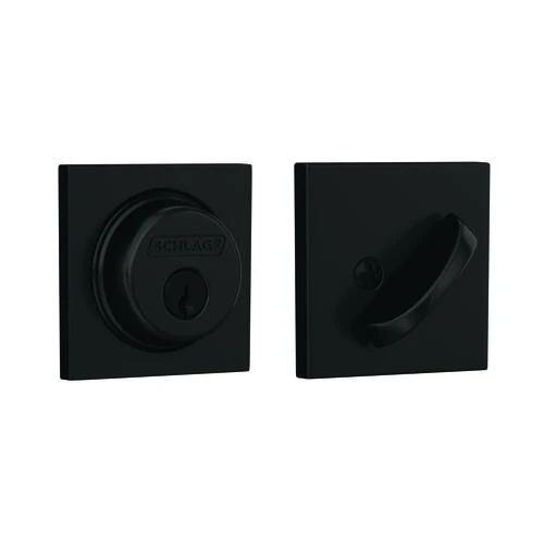 The Schlage® Single Cylinder Deadbolt with Collins Trim in matte black is perfect for use on exterior doors and adds an extra layer of security to your exterior handleset or knob/lever. The Collins trim’s strong lines and square shape embody refined elegance, while the striking appearance of the matte black finish creates an elegant look that’s sure to be noticed in any style setting. Plus, it’s been designed and tested with strength and durability in mind.