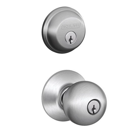 For more than 95 years, Schlage® has built a legacy of providing security, quality, and innovation to homes and businesses. With products that meet the highest industry standards, Schlage® hardware is made to protect your home and give you peace of mind that only comes with products that stand the test of time. This knob and deadbolt combination features a satin chrome finish to accent your décor.