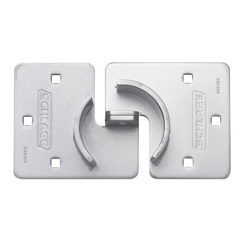 The Schlage® Vehicle Hasp is both durable and dependable. The hasp is constructed from hardened steel to resist prying, cutting, and sawing. It is perfect for use in high-risk locations.